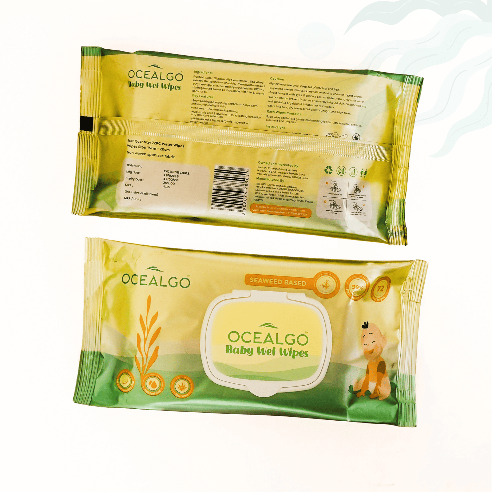 OCEALGO brings the calming power of the sea to everyday care. Each wipe is enriched with cosmetic-grade, water-soluble seaweed extract, aloe, glycerin, and vitamin E—creating a silky, soothing lotion that hydrates while it cleans. The gentle 80:20 poly-viscose spunlace fabric reduces friction, prevents redness, and offers a smooth glide that dry tissues simply can’t match.